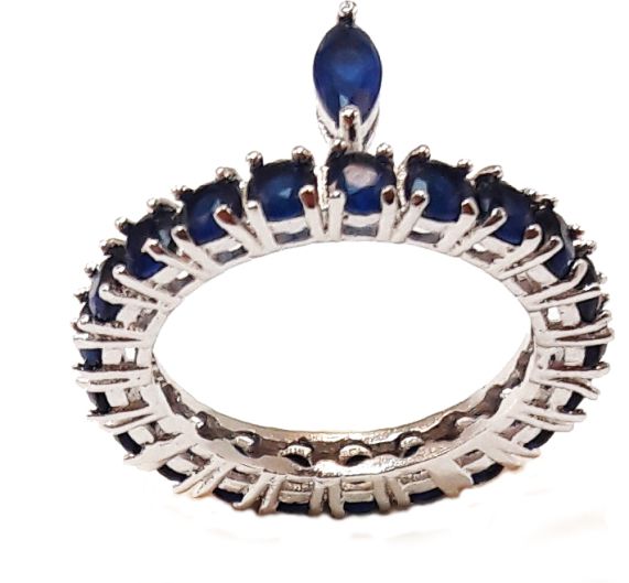Anel semijoia com banho de ródio de 20 micra, garantindo alta durabilidade e brilho. Possui pedras de zircônia safira que realçam sua beleza e uma medida de 1,6 cm de diâmetro, ideal para um ajuste confortável.